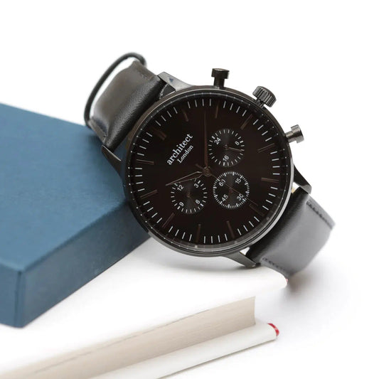 Architect Motivator - Men's Personalised watch with Black Leather Strap