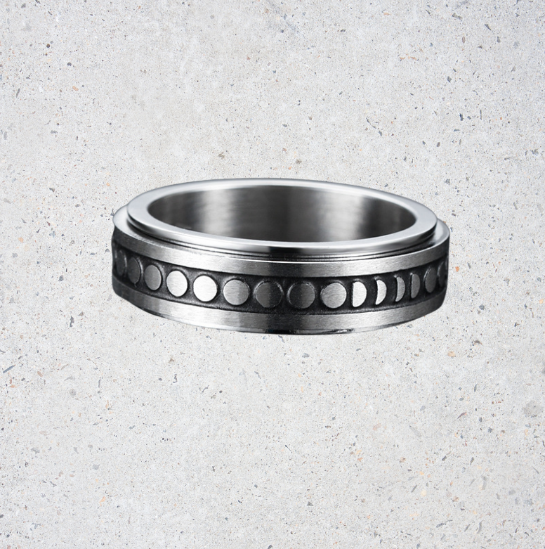Say goodbye to anxious thoughts with just a few spins a day! This ring is designed like a fidget spinner aimed to deliver the same stress-relieving feature but more accessible to you. Whenever you're overwhelmed with emotions at work or at school, this ring is your best companion. And with its elegant moon phase design, it's the perfect accessory for everyday wear.
